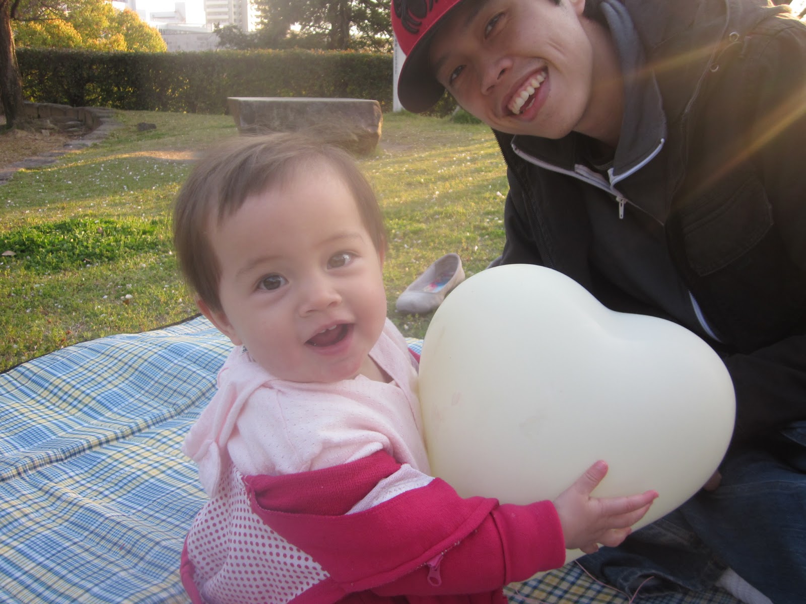 We missed the ferry we were planning on taking back, missing our train in the process, but luckily we met some friends on the island, who owned a car, and we got a ride home to Fukuyama. So in the end we were able to join our friends for hanami with being late to the festivities only a little bit. We even acquired a balloon on our way to Castle Park.